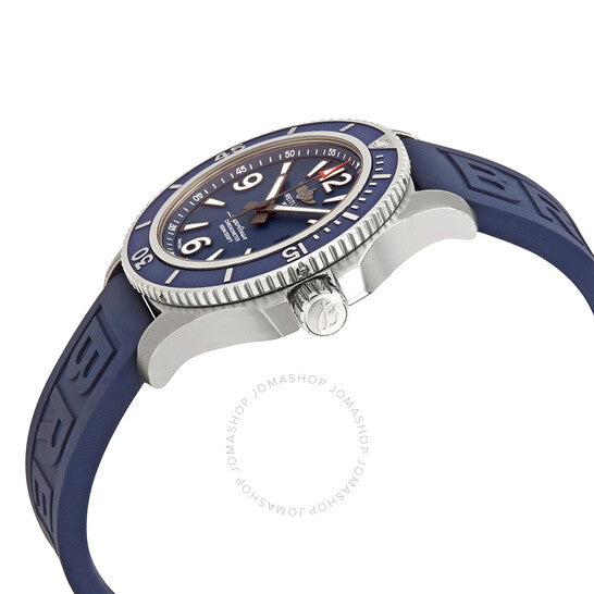 علبة من الفولاذ المقاوم للصدأ مع سوار مطاطي أزرق (دايفر برو 3). إطار دوار أحادي الاتجاه من الفولاذ المقاوم للصدأ بحلقة زرقاء. ميناء أزرق مع عقارب رمادية مضيئة ومؤشرات ساعات. أرقام عربية تُشير إلى مواقع الساعات 6 و9 و12. مؤشرات دقائق حول الحافة الخارجية. نوع الميناء: تناظري. عقارب ومؤشرات مضيئة. عرض التاريخ عند موضع الساعة 3. حركة بريتلينغ أوتوماتيكية كاليبر 17، مبنية على ETA 2824-2، تحتوي على 25 جوهرة، تنبض بمعدل 28800 ذبذبة في الساعة، ولديها احتياطي طاقة لمدة 42 ساعة تقريبًا. زجاج ياقوت مقاوم للخدش. تاج مُغلق ببرغي. غطاء خلفي صلب. شكل دائري. حجم العلبة: 44 مم. سمك العلبة: 14.2 مم. عرض السوار: 22 مم / 20 مم. مشبك قابل للطي. مقاومة للماء حتى عمق 1000 متر / 3300 قدم. الوظائف: التاريخ، الساعات، الدقائق، الثواني، الكرونومتر. طراز ساعة الغوص. علامة الساعة: صناعة سويسرية. ساعة بريتلينغ سوبر أوشن 44 أوتوماتيكية للرجال بمينا أزرق، A17367D81C1S2.