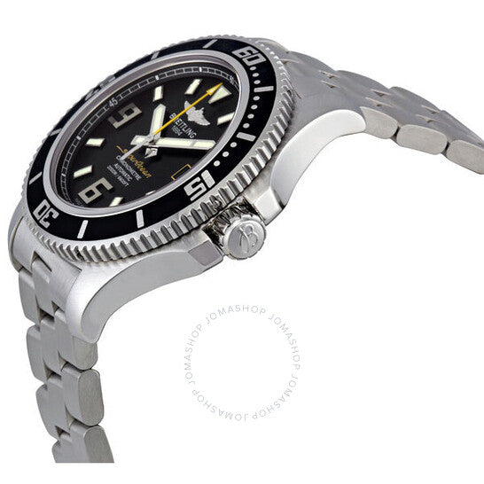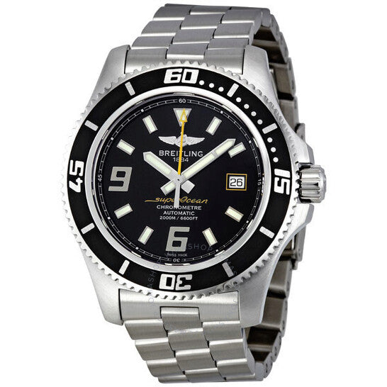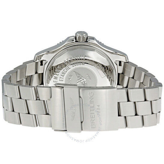 علبة من الفولاذ المقاوم للصدأ مع سوار من الفولاذ المقاوم للصدأ. إطار أحادي الاتجاه مطلي بالأيونات. ميناء أسود بعقارب مضيئة ومؤشرات ساعات. أرقام عربية تُشير إلى موضعي الساعة 6 و9. مؤشرات دقائق حول الحافة الخارجية. نوع الميناء: تناظري. يظهر عرض التاريخ عند موضع الساعة 3. حركة أوتوماتيكية. زجاج ياقوت مقاوم للخدش. قطر العلبة: 44 مم. مشبك قابل للطي. مقاومة للماء حتى عمق 2000 متر/6600 قدم. الوظائف: الساعات، الدقائق، الثواني، التقويم. تصميم ساعة فاخرة. ساعة بريتلينغ سوبر أوشن 44 أوتوماتيكية للرجال بمينا أسود، A1739012-BA78SS.