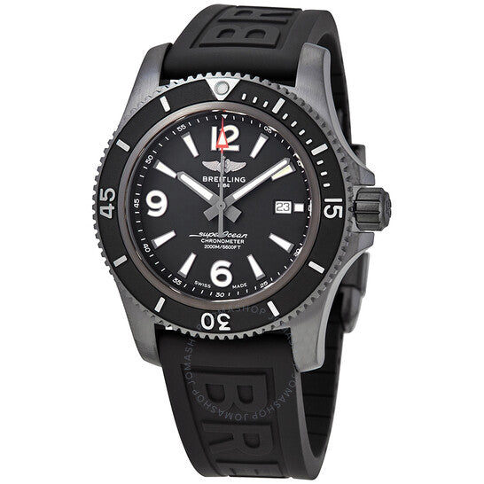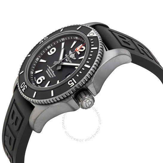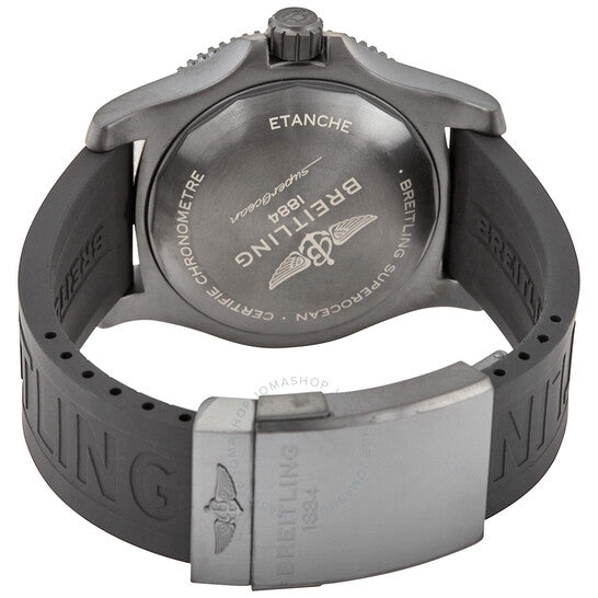 علبة من الفولاذ المقاوم للصدأ مطلية بمادة DLC سوداء مع سوار مطاطي أسود (دايفر برو III). إطار دوار أحادي الاتجاه من مادة DLC سوداء بحلقة معدنية سوداء. ميناء أسود بعقارب رمادية مضيئة وعلامات ساعات. أرقام عربية تُشير إلى الساعات 6 و9 و12. علامات دقائق حول الحافة الخارجية. نوع الميناء: تناظري. عقارب وعلامات مضيئة. عرض التاريخ عند الساعة 3. حركة أوتوماتيكية من بريتلينغ كاليبر 17 مع احتياطي طاقة لمدة 38 ساعة. زجاج ياقوت مقاوم للخدش. تاج مُغلق ببرغي. غطاء خلفي صلب. شكل دائري. حجم العلبة: 46 مم. سمك العلبة: 16.85 مم. عرض السوار: 24 مم. مشبك قابل للطي بزر ضغط. مقاومة للماء حتى عمق 2000 متر / 6600 قدم. الوظائف: التاريخ، الساعة، الدقائق، الثواني. طراز ساعة الغوص. ملصق الساعة: صناعة سويسرية. ساعة بريتلينج سوبر أوشن 46 أوتوماتيكية للرجال بمينا أسود M17368B71B1S2.
