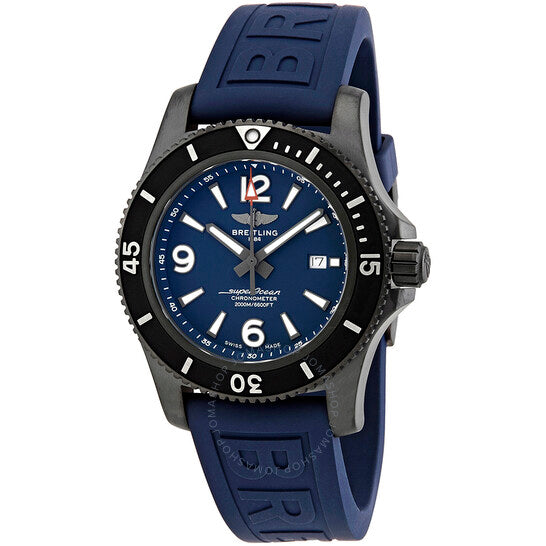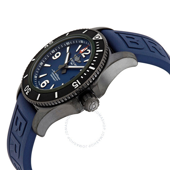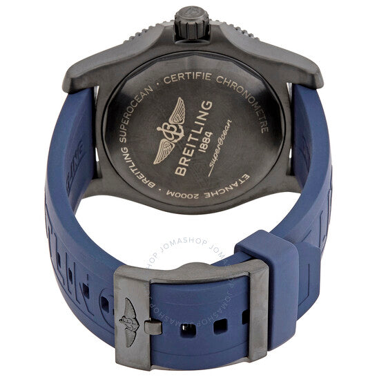 علبة سوداء من الفولاذ المقاوم للصدأ مطلية بمادة DLC، مع سوار مطاطي أزرق (دايفر برو 3). إطار دوار أحادي الاتجاه من مادة DLC سوداء بحلقة معدنية سوداء. ميناء أزرق مع عقارب رمادية مضيئة ومؤشرات ساعات. أرقام عربية تُشير إلى الساعات 6 و9 و12. مؤشرات دقائق حول الحافة الخارجية. نوع الميناء: تناظري. عقارب ومؤشرات مضيئة. عرض التاريخ عند الساعة 3. حركة أوتوماتيكية من بريتلينغ كاليبر 17 مع احتياطي طاقة لمدة 38 ساعة. زجاج ياقوت مقاوم للخدش. تاج مُغلق ببرغي. غطاء خلفي صلب. شكل دائري. حجم العلبة: 46 مم. سمكها: 16.85 مم. عرض السوار: 24 مم. مشبك تانغ. مقاومة للماء حتى عمق 2000 متر / 6600 قدم. الوظائف: التاريخ، الساعة، الدقائق، الثواني. طراز ساعة الغوص. ملصق الساعة: صناعة سويسرية. ساعة بريتلينج سوبر أوشن 46 أوتوماتيكية للرجال بمينا أزرق M17368D71C1S1.