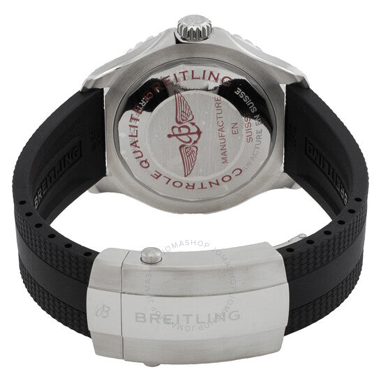 علبة من الفولاذ المقاوم للصدأ فضية اللون مع سوار مطاطي أسود. إطار أسود دوار أحادي الاتجاه. ميناء أزرق مع عقارب وعلامات ساعات فضية اللون. علامات دقائق حول الحافة الخارجية. نوع الميناء: تناظري. عقارب وعلامات مضيئة. حركة بريتلينغ كاليبر 17 أوتوماتيكية، مبنية على ETA 2824-2، تحتوي على 25 جوهرة، تنبض بمعدل 28800 ذبذبة في الساعة، ولديها احتياطي طاقة لمدة 42 ساعة تقريبًا. زجاج من الياقوت المقاوم للخدش. تاج لولبي. شكل العلبة دائري، مقاسها 44 مم. مشبك قابل للطي مع مفتاح أمان. مقاومة للماء حتى عمق 300 متر / 1000 قدم. الوظائف: الساعات، الدقائق، الثواني، الكرونومتر. معلومات إضافية: العلبة الأصلية، بطاقة الضمان الدولية، دليل الاستخدام (ملحقات كاملة). سلسلة سوبر أوشن. طراز ساعة الغوص. ملصق الساعة: صناعة سويسرية. ساعة بريتلينج سوبر أوشن أوتوماتيكية كرونومتر بمينا أزرق للرجال A17376211L2S1.