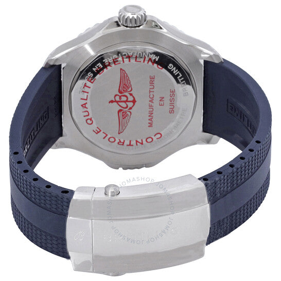 علبة فضية اللون من الفولاذ المقاوم للصدأ مع سوار مطاطي أزرق. إطار سيراميك أزرق دوار ثنائي الاتجاه. ميناء أزرق مع عقارب وعلامات ساعات فضية اللون. علامات دقائق حول الحافة الخارجية. نوع الميناء: تناظري. عقارب وعلامات مضيئة. حركة بريتلينغ كاليبر 17 أوتوماتيكية، مبنية على ETA 2824-2، تحتوي على 25 جوهرة، تنبض بمعدل 28800 ذبذبة في الساعة، ولديها احتياطي طاقة يدوم حوالي 42 ساعة. زجاج من الياقوت المقاوم للخدش. تاج لولبي. غطاء خلفي صلب. شكل العلبة دائري، مقاسها: 46 مم، سمكها: 13.2 مم. عرض السوار: 24 مم. مشبك قابل للطي. مقاومة للماء حتى عمق 300 متر / 1000 قدم. الوظائف: الساعات، الدقائق، الثواني، الكرونومتر. سلسلة سوبر أوشن. طراز ساعة الغوص. علامة الساعة: سويسرية الصنع. ساعة بريتلينج سوبر أوشن أوتوماتيكية كرونومتر بمينا أزرق للرجال A17378E71C1S1.