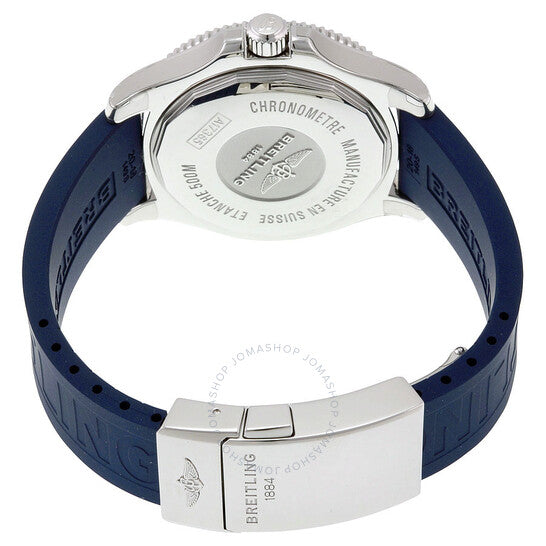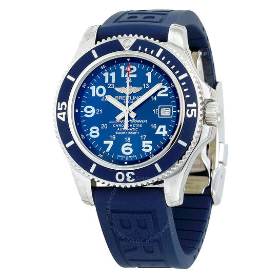 علبة من الفولاذ المقاوم للصدأ مع سوار مطاطي أزرق (دايفر برو 3). إطار دوار أحادي الاتجاه من الفولاذ المقاوم للصدأ بحلقة علوية زرقاء. ميناء أزرق مع عقارب فضية مضيئة وعلامات ساعات عربية. علامات ٢٤ ساعة. علامات دقائق حول الحافة الخارجية. نوع الميناء: تناظري. عقارب وعلامات مضيئة. عرض التاريخ عند موضع الساعة ٣. حركة أوتوماتيكية مع احتياطي طاقة ٤٢ ساعة. زجاج ياقوت مقاوم للخدش. تاج مُغلق ببرغي. غطاء خلفي صلب. قطر العلبة: ٤٢ مم. سُمكها: ١٣.٣ مم. شكلها دائري. عرض السوار: ٢٠ مم / ١٨ مم. مشبك قابل للطي. مقاومة للماء حتى عمق ٥٠٠ متر / ١٦٥٠ قدمًا. الوظائف: التاريخ، الساعة، الدقيقة، الثانية. تصميم ساعة فاخرة. علامة الساعة: صناعة سويسرية. إصدارات المنتج: A17365D1/C915 149S-A18D.2. ساعة بريتلينج سوبر أوشن II 42 أوتوماتيكية للرجال بمينا أزرق ومطاط أزرق A17365D1-C915BLPD3.