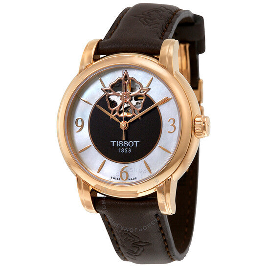 علبة من الفولاذ المقاوم للصدأ مطلية بالذهب الوردي بتقنية PVD مع حزام من الجلد البني. إطار ثابت مطلي بالذهب الوردي بتقنية PVD. ميناء من عرق اللؤلؤ (بني في المنتصف) مع عقارب على شكل حرف ألفا بلون الذهب الوردي وعلامات ساعات مؤشرة. أرقام عربية تشير إلى مواضع الساعة 3 و6 و9. نوع الميناء: تناظري. حركة أوتوماتيكية Tissot عيار Powermatic 80.601، مبنية على Tissot عيار Powermatic 80، تحتوي على 23 جوهرة، تنبض بمعدل 21600 ذبذبة في الساعة، ولديها احتياطي طاقة لمدة 80 ساعة تقريبًا. كريستال ياقوت مقاوم للخدش. تاج سحب/دفع. غطاء خلفي صلب. شكل دائري. حجم العلبة: 35 مم. سمك العلبة: 9.35 مم. عرض السوار: 16 مم. طول السوار: 8 بوصات. مشبك تانغ. مقاومة للماء حتى عمق 30 مترًا / 100 قدم. الوظائف: الساعة، الدقيقة، الثانية. طراز ساعة رسمية. ملصق الساعة: صنع سويسري. ساعة Tissot T-Classic Lady Heart أوتوماتيكية للسيدات T0502073711704.
