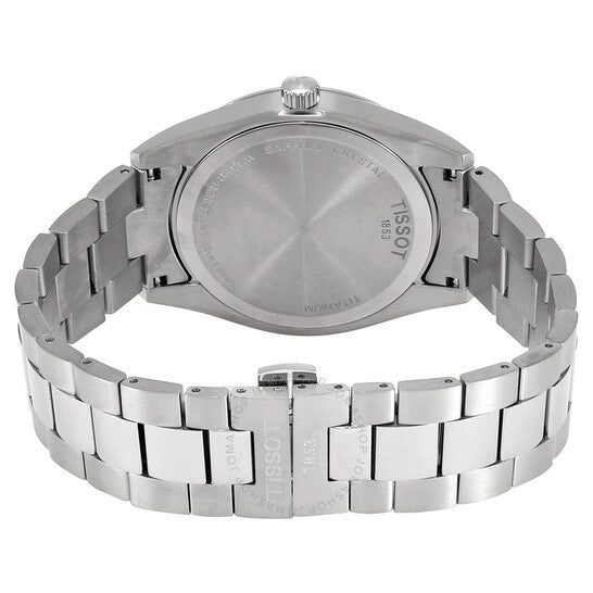 علبة تيتانيوم رمادية اللون مع سوار تيتانيوم رمادي. إطار تيتانيوم رمادي ثابت. ميناء رمادي مع عقارب ومؤشرات ساعات فضية مضيئة. مؤشرات دقائق حول الحافة الخارجية. نوع الميناء: تناظري. عقارب ومؤشرات مضيئة. عرض التاريخ عند موضع الساعة 3. حركة كوارتز ETA عيار F06.115. زجاج ياقوت مقاوم للخدش. غطاء خلفي صلب. شكل دائري. حجم العلبة: 40 مم. سمكها: 8.5 مم. عرض السوار: 21 مم. مشبك قابل للطي مع مفتاح أمان. مقاومة للماء حتى عمق 100 متر / 330 قدمًا. الوظائف: التاريخ، الساعة، الدقائق، الثواني، مؤشر عمر البطارية. سلسلة T-classic. طراز ساعة رسمية. علامة الساعة: صناعة سويسرية. ساعة تيسوت T-Classic رجالية، كوارتز تيتانيوم، ميناء رمادي، T127.410.44.081.00.
