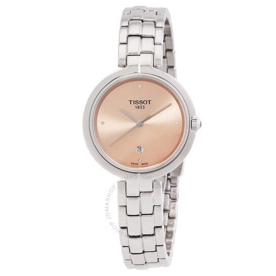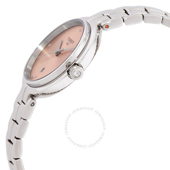 علبة وسوار من الفولاذ المقاوم للصدأ فضي اللون. إطار ثابت من الفولاذ المقاوم للصدأ فضي اللون. ميناء وردي مع عقارب فضية اللون وعلامات ساعات من الألماس. نوع الميناء: تناظري. عرض التاريخ عند موضع الساعة السادسة. حركة كوارتز كاليبر ريناتا 364. زجاج ياقوت مقاوم للخدش. تاج لولبي. غطاء خلفي صلب. شكل العلبة دائري، مقاسها: 30 مم، سمكها: 6.4 مم. مشبك قابل للطي بزر ضغط. مقاومة للماء حتى عمق 50 مترًا / 165 قدمًا. الوظائف: التاريخ، الساعة، الدقائق، الثانية. سلسلة تي-ليدي. طراز ساعة رسمية. علامة الساعة: صناعة سويسرية. ساعة تي-ليدي كوارتز نسائية بمينا وردي مرصعة بالألماس T0942101133600.