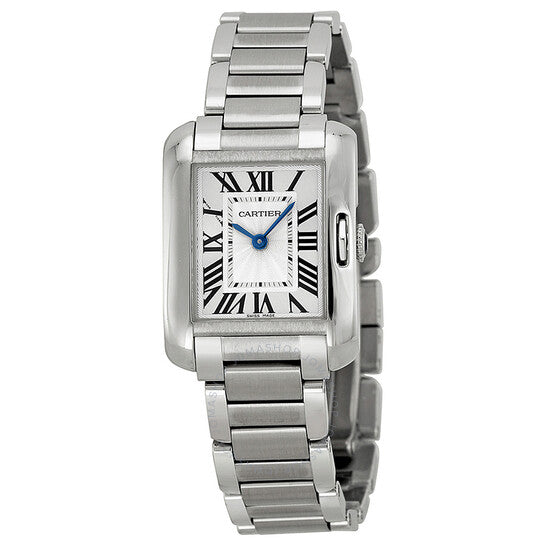 علبة من الفولاذ المقاوم للصدأ مع سوار من الفولاذ المقاوم للصدأ. إطار ثابت من الفولاذ المقاوم للصدأ. ميناء فضي بنقشة فلينك مع عقارب زرقاء وعلامات ساعات بأرقام رومانية. علامات دقائق حول حلقة داخلية. آلية حركة كوارتز. زجاج من الياقوت المقاوم للخدش. تاج قابل للسحب والدفع مرصع بحجر كابوشون من الياقوت. غطاء خلفي صلب. أبعاد العلبة: 30.2 مم × 22.7 مم. سُمكها: 7.19 مم. شكلها مستطيل. مشبك طي مخفي. مقاومة للماء حتى عمق 30 مترًا / 100 قدم. وظائفها: الساعات، الدقائق. تصميمها كاجوال. علامة الساعة: صناعة سويسرية. ساعة كارتييه تانك أنجليز نسائية بمينا فضي وسوار من الفولاذ المقاوم للصدأ W5310022.