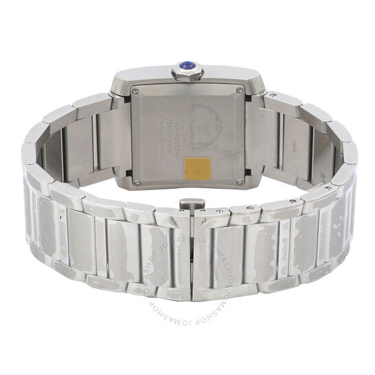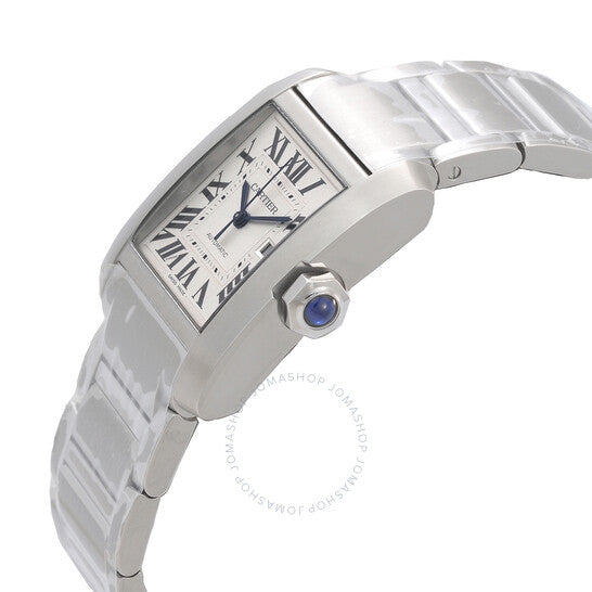 علبة وسوار من الفولاذ المقاوم للصدأ فضي اللون. إطار ثابت من الفولاذ المقاوم للصدأ فضي اللون. ميناء فضي بعقارب زرقاء وعلامات ساعات رومانية. علامات دقائق حول حلقة داخلية. نوع الميناء: تناظري. حركة أوتوماتيكية. زجاج ياقوت مقاوم للخدش. تاج مُرصّع بخرز على شكل كابوشون صناعي. غطاء خلفي صلب. هيكل مستطيل الشكل، أبعاده: 36.7 مم × 30.5 مم، سُمكه: 10.1 مم. مشبك قابل للطي. مقاومة للماء حتى عمق 30 مترًا / 100 قدم. الوظائف: التاريخ، الساعة، الدقائق، الثواني. سلسلة تانك فرانسيز. طراز ساعة رسمية. علامة الساعة: صناعة سويسرية. ساعة كارتييه تانك فرانسيز أوتوماتيكية نسائية بمينا فضي WSTA0067.