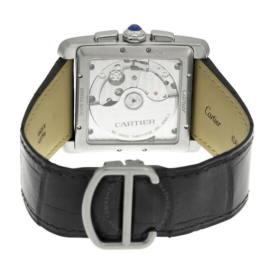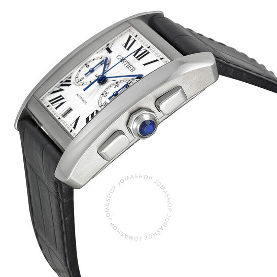 علبة من الفولاذ المقاوم للصدأ مع سوار جلدي أسود. إطار ثابت من الفولاذ المقاوم للصدأ. ميناء فضي بعقارب زرقاء وعلامات ساعات رومانية. علامات دقائق حول الحافة الخارجية. نوع الميناء: تناظري. عرض التاريخ عند موضع الساعة السادسة. ميناءان فرعيان يعرضان: ١٢ ساعة و٣٠ دقيقة. حركة كارتييه عيار ١٩٠٤-CH MC أوتوماتيكية مع احتياطي طاقة ٤٨ ساعة. زجاج ياقوتي مقاوم للخدش. تاج قابل للسحب/الدفع. غطاء خلفي شفاف من الياقوت. حجم العلبة: ٣٤.٣ مم × ٤٤ مم. سمكها: ١١.٧ مم. شكل العلبة مستطيل. مشبك قابل للطي. مقاومة للماء حتى عمق ٣٠ مترًا / ١٠٠ قدم. الوظائف: كرونوغراف، عجلة عمودية، تاريخ، ساعة، دقيقة، ثانية صغيرة. طراز ساعة فاخرة. علامة الساعة: صناعة سويسرية. ساعة كارتييه تانك إم سي كرونوغراف للرجال بمينا فضي W5330007.