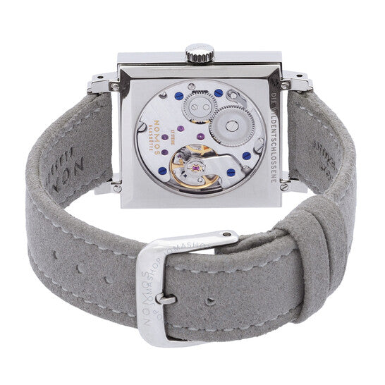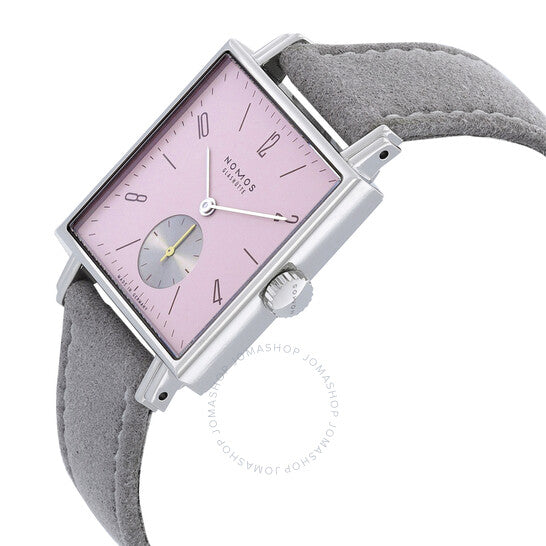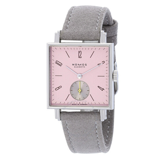 علبة فضية اللون من الفولاذ المقاوم للصدأ مع سوار جلدي رمادي. إطار ثابت فضي اللون من الفولاذ المقاوم للصدأ. ميناء وردي بعقارب فضية اللون وعلامات ساعات بأرقام عربية. علامات دقائق حول الحافة الخارجية. نوع الميناء: تناظري. موانئ فرعية للثواني الصغيرة. حركة أوتوماتيكية Aplha مع احتياطي طاقة لمدة 43 ساعة. زجاج من الياقوت المقاوم للخدش. تاج قابل للسحب/الدفع. غطاء خلفي شفاف. شكل العلبة مربع، مقاسها: 29.5 مم، سمكها: 6.3 مم. عرض السوار: 18 مم. مشبك تانغ. مقاومة للماء حتى عمق 30 مترًا / 100 قدم. الوظائف: الساعات، الدقائق، الثواني. سلسلة تيترا. طراز ساعة رسمية. ملصق الساعة: صنع في ألمانيا. ساعة نوموس تيترا أوتوماتيكية نسائية بمينا وردي 476.