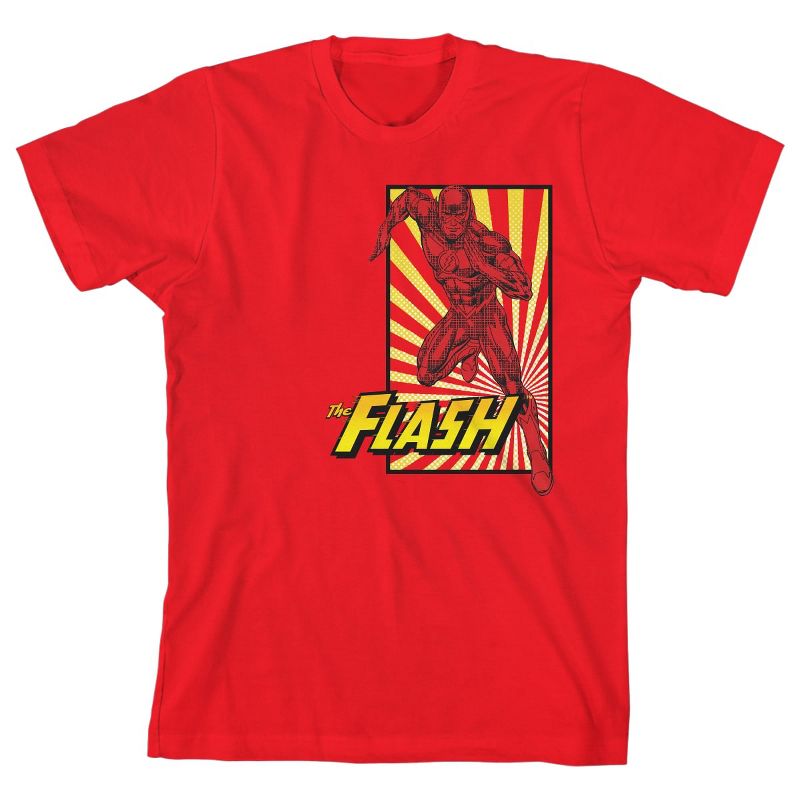 - تيشيرت أحمر: الخلفية الحمراء لهذا القميص ستُبرز أبطالك الصغار وهم يلعبون مع أصدقائهم ويحتفلون بأساطير دي سي كوميكس المفضلة لديهم. سيُعجب مُحبو باري ألين بهذا التيشيرت.