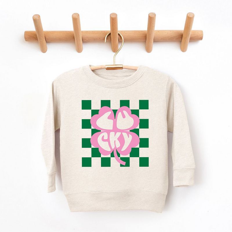 هل تبحثون عن سويت شيرت لطيف لأطفالكم؟ لدينا سويت شيرت "لاكي كلوفر" فائق النعومة والمُربّع برسومات مربعات، الإضافة المثالية لخزانة ملابسهم! متوفر أيضًا بسويت شيرتات للأطفال الصغار.