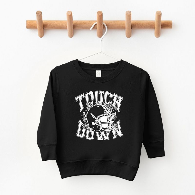هل تبحثون عن سويت شيرت لطيف لأطفالكم؟ لدينا سويت شيرت Touchdown Helmet فائق النعومة برسومات جرافيكية، الإضافة المثالية لخزانة ملابسهم! متوفر أيضًا بسويت شيرتات للأطفال الصغار.