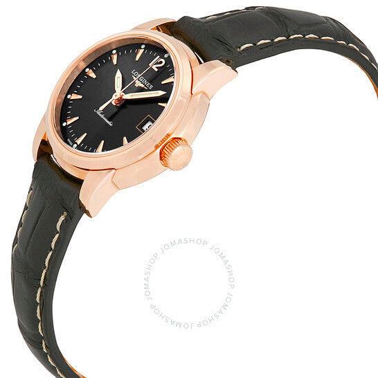 علبة من الذهب الوردي عيار 18 قيراطًا مع سوار جلدي أسود. إطار ثابت. ميناء أسود بعقارب بلون الذهب الوردي ومؤشر عربي عند الساعة 12. نوع الميناء: تناظري. عرض التاريخ عند الساعة 3. حركة أوتوماتيكية باحتياطي طاقة يصل إلى حوالي 40 ساعة. زجاج من الياقوت المقاوم للخدش. تاج قابل للسحب/الدفع. حجم العلبة: 26 مم. شكلها دائري. مقاومة للماء حتى عمق 30 مترًا / 100 قدم. الوظائف: التاريخ، الساعة، الدقائق، الثواني. تصميم ساعة فاخرة. علامة الساعة: صناعة سويسرية. ساعة لونجين سانت إيمييه النسائية الأوتوماتيكية الجلدية L2.263.8.52.3.