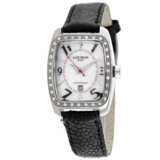علبة تيتانيوم رمادية اللون مع سوار جلدي أسود. إطار تيتانيوم رمادي ثابت. ميناء من عرق اللؤلؤ مع عقارب فضية اللون وعلامات ساعات بأرقام عربية. مقياس دقائق حول الحافة الداخلية. نوع الميناء: تناظري. عرض التاريخ عند موضع الساعة السادسة. حركة كوارتز. زجاج معدني مقاوم للخدش. علبة مستطيلة الشكل، مقاس العلبة: ٢٨ مم، سمكها: ١٢ مم. عرض السوار: ١٦ مم، طوله: ٧.٥ بوصة. مشبك بإبزيم. مقاومة للماء حتى عمق ٣٠ مترًا / ١٠٠ قدم. الوظائف: التاريخ، الساعة، الدقائق، الثواني. سلسلة تيتانيو. ساعة أنيقة. ساعة لوكمان تيتانيو كوارتز نسائية ٤٨٣RMOPBK2D/BK OS.