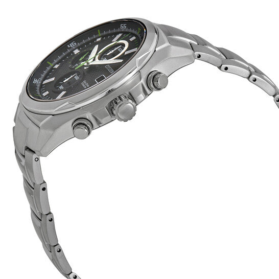 علبة من التيتانيوم الرمادي مع سوار من التيتانيوم الرمادي. إطار ثابت من التيتانيوم الرمادي. ميناء أسود بعقارب فضية اللون وعلامات ساعات. علامات دقائق حول الحافة الداخلية. نوع الميناء: تناظري. عقارب وعلامات مضيئة. عرض التاريخ عند موضع الساعة 3. كرونوغراف - ثلاثة أقراص فرعية تعرض: 60 ثانية، 60 دقيقة، و24 ساعة. آلية حركة إيكو درايف. زجاج ياقوتي مقاوم للخدش. غطاء خلفي صلب. شكل دائري. حجم الهيكل: 43 مم. سمك الهيكل: 11 مم. عرض السوار: 18 مم. مشبك قابل للطي. مقاومة للماء حتى عمق 100 متر / 330 قدم. الوظائف: التاريخ، الساعات، الدقائق، الثواني، تعمل بالطاقة الشمسية. طراز ساعة رياضية. علامة الساعة: Japan Movt. إصدارات الساعة: CA0190 56E، CA0190.56E، CA019056E. ساعة سيتيزن تيتانيوم إيكو درايف للرجال بمينا أسود CA0190-56E.