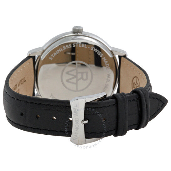 علبة من الفولاذ المقاوم للصدأ مع سوار جلدي أسود. إطار ثابت من الفولاذ المقاوم للصدأ. ميناء أسود بعقارب فضية اللون وعلامات ساعات. علامات دقائق حول الحافة الخارجية. نوع الميناء: تناظري. عرض التاريخ عند موضع الساعة 3. حركة كوارتز. زجاج ياقوت مقاوم للخدش. تاج قابل للسحب/الدفع. غطاء خلفي صلب. حجم العلبة: 42 مم. سمكها: 8 مم. شكلها دائري. عرض السوار: 18 مم. مشبك تانغ. مقاومة للماء حتى عمق 50 مترًا / 165 قدمًا. الوظائف: التاريخ، الساعة، الدقائق. معلومات إضافية: مناسبة بشكل عام للسباحة الترفيهية القصيرة، ولكنها ليست مناسبة للغوص أو الغطس السطحي. طراز ساعة رسمية. علامة الساعة: صناعة سويسرية. إصدارات الساعة: 5588 STC 20001، 5588.STC.20001، 5588STC20001. ساعة ريموند ويل توكاتا للرجال بمينا أسود وجلد أسود 5588-STC-20001.