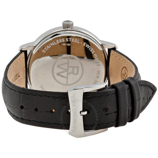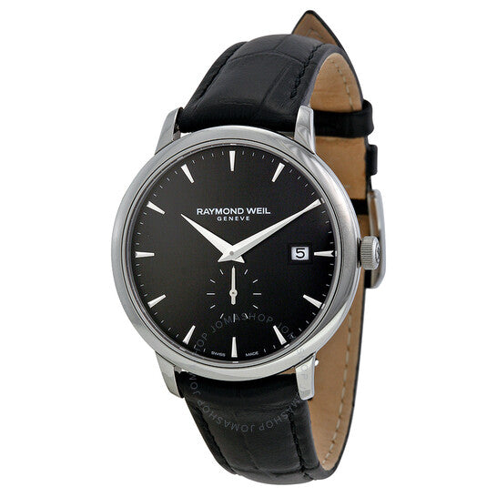 علبة من الفولاذ المقاوم للصدأ مع سوار أسود من جلد العجل. إطار ثابت من الفولاذ المقاوم للصدأ. ميناء أسود بعقارب فضية اللون وعلامات ساعات. علامات دقائق حول الحافة الخارجية. نوع الميناء: تناظري. عرض التاريخ عند موضع الساعة 3. ميناء فرعي للثواني فوق موضع الساعة 6. آلية حركة كوارتز. زجاج ياقوتي مقاوم للخدش. تاج قابل للسحب/الدفع. غطاء خلفي صلب. قطر العلبة: 39 مم. سمكها: 8 مم. شكلها دائري. عرض السوار: 19 مم. طول السوار: 7.75 بوصة. مشبك تانغ. مقاومة للماء حتى عمق 50 مترًا / 165 قدمًا. الوظائف: التاريخ، الساعة، الدقائق، الثواني. تصميم كاجوال. ساعة ريموند ويل توكاتا للرجال بمينا أسود وجلد أسود، RW-5484-STC-20001.