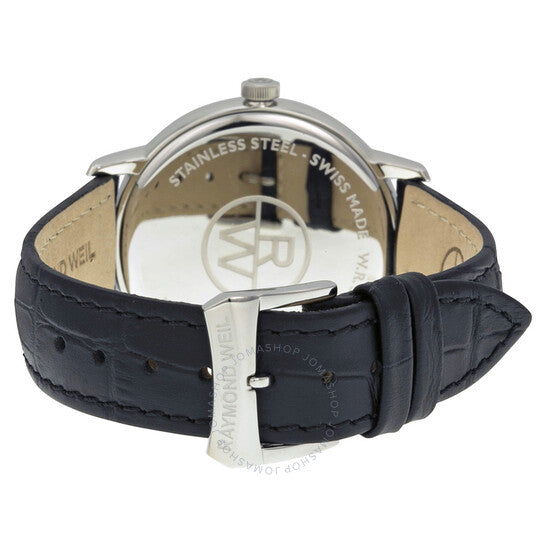 علبة من الفولاذ المقاوم للصدأ مع سوار جلدي أسود. إطار ثابت من الفولاذ المقاوم للصدأ. ميناء أسود بعقارب فضية اللون وعلامات ساعات. علامات دقائق حول الحافة الخارجية. نوع الميناء: تناظري. عرض التاريخ عند موضع الساعة 3. آلية حركة كوارتز. زجاج ياقوتي مقاوم للخدش. تاج قابل للسحب/الدفع. غطاء خلفي صلب. قطر العلبة: 39 مم. سمكها: 8 مم. شكلها دائري. عرض السوار: 18 مم. طول السوار: 8.5 بوصة. مشبك تانغ. مقاومة للماء حتى عمق 50 مترًا / 165 قدمًا. الوظائف: التاريخ، الساعة، الدقائق، الثواني. تصميم كاجوال. ساعة ريموند ويل توكاتا للرجال بمينا أسود وجلد أسود، RW-5488-STC-20001.