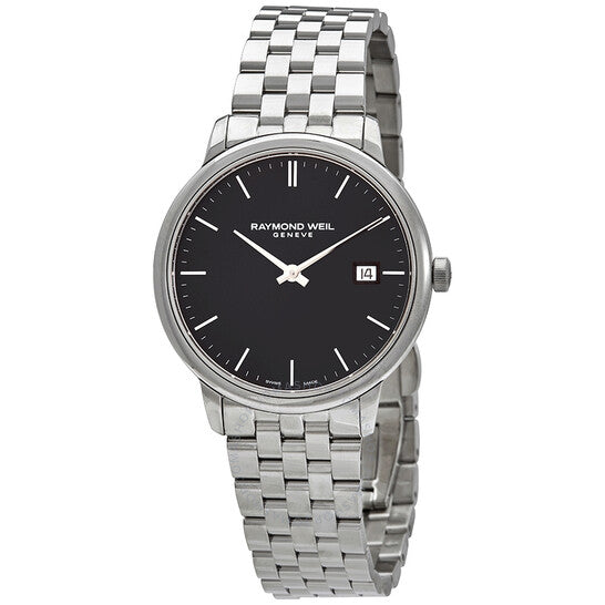 علبة من الفولاذ المقاوم للصدأ مع سوار من الفولاذ المقاوم للصدأ. إطار ثابت من الفولاذ المقاوم للصدأ. ميناء أسود بعقارب فضية اللون وعلامات ساعات. علامات دقائق حول الحافة الخارجية. نوع الميناء: تناظري. عرض التاريخ عند موضع الساعة 3. آلية حركة كوارتز. زجاج ياقوت مقاوم للخدش. تاج قابل للسحب/الدفع. غطاء خلفي صلب. شكل دائري. حجم العلبة: 39 مم. سمكها: 7.82 مم. عرض السوار: 20 مم. مشبك قابل للطي مع نظام أمان مزدوج. مقاومة للماء حتى عمق 50 مترًا / 165 قدمًا. الوظائف: التاريخ، الساعة، الدقيقة، الثانية. طراز ساعة رسمية. علامة الساعة: صناعة سويسرية. ساعة ريموند ويل توكاتا كوارتز للرجال بمينا سوداء، 5485-ST-20001.