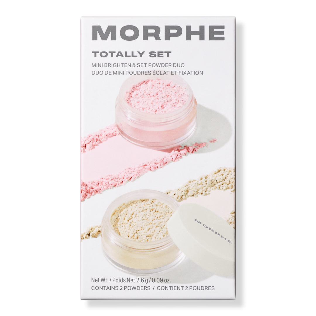 أضيفي إشراقةً وثباتًا للمكياج يدوم حتى ١٦ ساعة، وقلّلي اللمعان لمدة تصل إلى ٢٤ ساعة مع بودرة التثبيت "توتالي سيت ميني برايتن آند سيت" من مورفي. هذا الثنائي من بودرة التثبيت "بيك آند سيت" باللونين الوردي الفاتح والشفاف، يُضفي لمسةً طبيعيةً على البشرة، بينما يُنعم المسام ويزيل الخطوط الدقيقة.