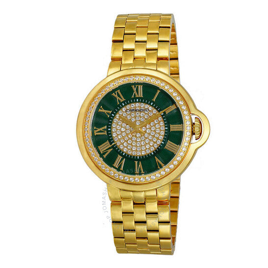 ساعة تورينو كاريرو تولون للسيدات، روندا سويسرية - 763، حجر ترصيع (164 قطعة)، ميناء أخضر، هيكل وسوار من الفولاذ المقاوم للصدأ بلون ذهبي أصفر. إطار ثابت من الفولاذ المقاوم للصدأ بلون ذهبي أصفر. ميناء أخضر مع عقارب ذهبية صفراء وعلامات ساعات رومانية. علامات دقائق حول الحافة الخارجية. نوع الميناء: تناظري. عقارب مضيئة. حركة كوارتز روندا كاليبر 763. زجاج معدني مقاوم للخدش. تاج قابل للسحب/الدفع. غطاء خلفي صلب. شكل دائري، حجم الهيكل: 37.5 مم، سمك الهيكل: 10 مم. عرض السوار: 18.25 مم، طول السوار: 7 بوصات. مشبك قابل للطي بزر ضغط. مقاومة للماء حتى عمق 30 مترًا / 100 قدم. الوظائف: الساعة، الدقيقة، الثانية. سلسلة تولون. تصميم ساعة كاجوال. اسم الساعة: حركة كوارتز سويسرية. ساعة تورينو كاريرو تولون كوارتز نسائية بمينا خضراء CL1G04GNJ.