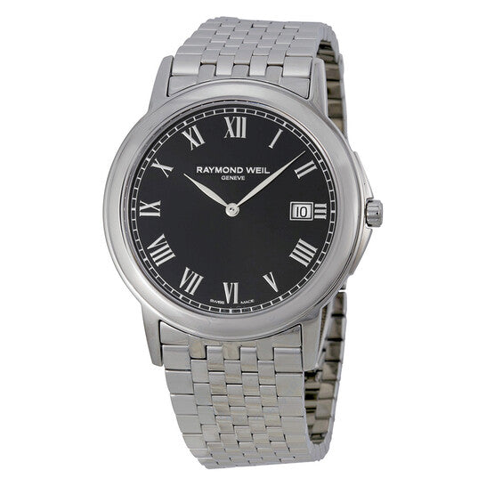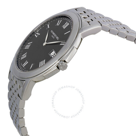 علبة من الفولاذ المقاوم للصدأ مع سوار من الفولاذ المقاوم للصدأ. إطار ثابت من الفولاذ المقاوم للصدأ. ميناء أسود بعقارب فضية اللون وعلامات ساعات بأرقام رومانية. علامات دقائق حول الحافة الخارجية. نوع الميناء: تناظري. عرض التاريخ عند موضع الساعة 3. آلية حركة كوارتز. زجاج ياقوت مقاوم للخدش. تاج قابل للسحب/الدفع. غطاء خلفي صلب. حجم العلبة: 39 مم، سمكها: 6 مم. شكل العلبة دائري. عرض السوار: 20 مم. مشبك قابل للطي. مقاومة للماء حتى عمق 50 مترًا / 165 قدمًا. الوظائف: التاريخ، الساعة، الدقائق. تصميم ساعة كاجوال. علامة الساعة: صناعة سويسرية. إصدارات المنتج: 5466 ST 00208، 5466.ST.00208، 5466ST00208. ساعة ريموند ويل تراديشن للرجال بمينا أسود من الفولاذ 5466-ST-00208.