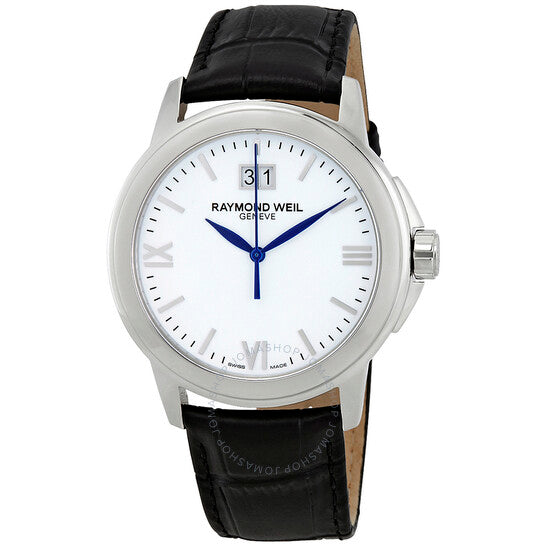 علبة من الفولاذ المقاوم للصدأ مع سوار أسود من جلد العجل. إطار ثابت من الفولاذ المقاوم للصدأ. ميناء أبيض بعقارب زرقاء على شكل سيف وعلامات ساعات. أرقام رومانية عند الأرقام 3 و6 و9. نوع الميناء: تناظري. عرض التاريخ عند الساعة 12. حركة كوارتز. زجاج ياقوت مقاوم للخدش. تاج قابل للسحب/الدفع. غطاء خلفي قابل للفك. شكل دائري. حجم العلبة: 41 مم. سمكها: 10.5 مم. عرض السوار: 22 مم. طول السوار: 7.5 بوصة. مشبك تانغ. مقاومة للماء حتى عمق 30 مترًا / 100 قدم. الوظائف: الساعات/الدقائق/الثواني/التاريخ. معلومات إضافية: عرض التاريخ عند الساعة 3. تصميم ساعة كاجوال. علامة الساعة: صناعة سويسرية. رقم الموديل: 5576ST00307. ساعة ريموند ويل تراديشن للرجال 5576-ST-00307.