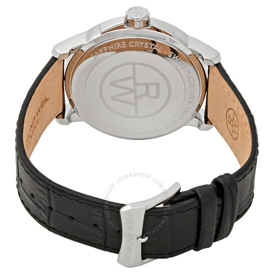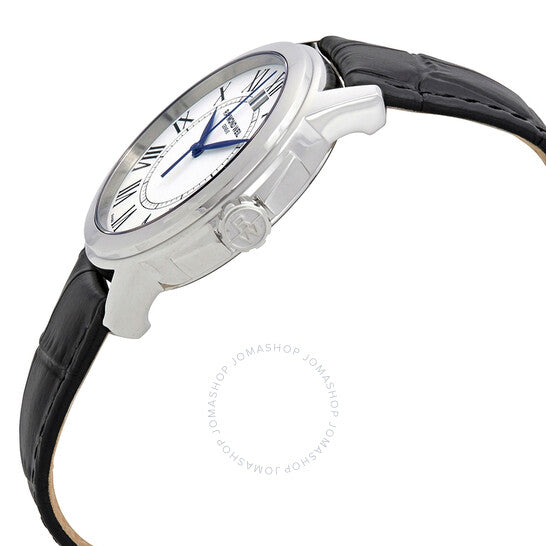 علبة من الفولاذ المقاوم للصدأ مع حزام جلدي أسود (منقوش بنقش جلد التمساح). إطار ثابت من الفولاذ المقاوم للصدأ. ميناء أبيض بعقارب فولاذية زرقاء وعلامات ساعات رومانية. علامات دقائق حول حلقة داخلية. نوع الميناء: تناظري. عرض التاريخ عند موضع الساعة ١٢. حركة كوارتز. زجاج ياقوت مقاوم للخدش. تاج قابل للسحب/الدفع. غطاء خلفي صلب. شكل دائري. حجم العلبة: ٤١ مم. سمكها: ١١ مم. عرض السوار: ٢٢ مم. طول السوار: ٧.٥ بوصة. مشبك تانغ. مقاومة للماء حتى عمق ٣٠ مترًا / ١٠٠ قدم. الوظائف: الساعات، الدقائق، الثواني، التقويم. معلومات إضافية: مقاومة للمطر ورذاذ الماء، ولكنها لا تتحمل الاستحمام أو الغمر. طراز ساعة رسمية. علامة الساعة: صناعة سويسرية. إصدارات المنتج: ٥٥٧٦ ST ٠٠٣٠٠، ٥٥٧٦.ST.٠٠٣٠٠، ٥٥٧٦ST٠٠٣٠٠. ساعة ريموند ويل تراديشن للرجال بمينا أبيض 5576-ST-00300.