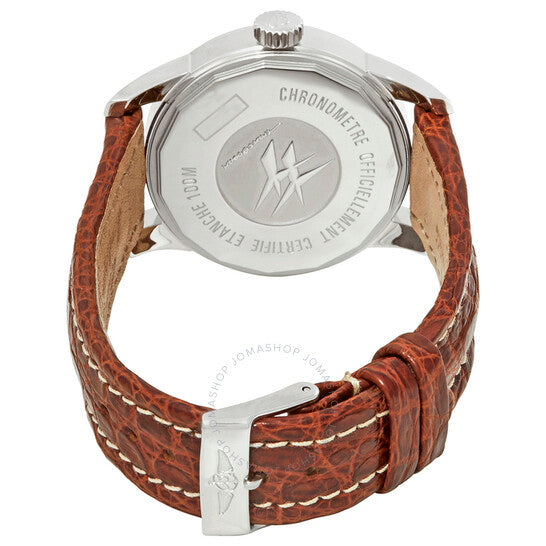 علبة فضية اللون من الفولاذ المقاوم للصدأ مع سوار جلدي بني. إطار ثابت من الفولاذ المقاوم للصدأ فضي اللون. ميناء فضي زئبقي مع عقارب فضية اللون وعلامات ساعات. علامات دقائق حول الحافة الخارجية. نوع الميناء: تناظري. عرض التاريخ أسفل موضع الساعة ١٢. ميناء فرعي واحد يعرض الثواني الصغيرة. حركة بريتلينغ كاليبر ١٦ أوتوماتيكية، مبنية على ETA ٢٨٩٢-A٢، تحتوي على ٣٠ جوهرة، تنبض بمعدل ٢٨٨٠٠ ذبذبة في الساعة، ولديها احتياطي طاقة لمدة ٤٢ ساعة تقريبًا. زجاج من الياقوت المقاوم للخدش. تاج بحشوتين للسحب/الدفع. غطاء خلفي صلب. شكل دائري، حجم العلبة: ٣٨ مم، سمك العلبة: ١٢.٧٥ مم. عرض السوار: ٢٠ مم. مشبك تانغ. مقاومة للماء حتى عمق ١٠٠ متر / ٣٣٠ قدمًا. الوظائف: التاريخ، الساعة، الدقيقة، الثانية. سلسلة ترانس أوشن ٣٨. تصميم ساعة فاخر. ملصق الساعة: صناعة سويسرية. ساعة بريتلينج ترانس أوشن 38 أوتوماتيكية للرجال بمينا فضي A1631012/G781-723P.