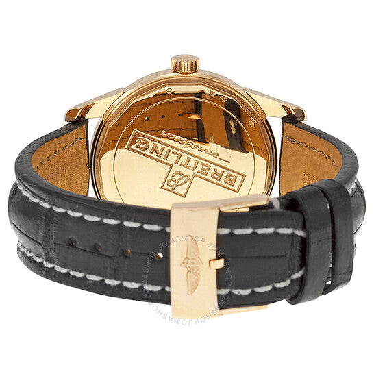 علبة من الذهب الوردي عيار ١٨ قيراطًا مع سوار أسود من جلد التمساح. إطار ثابت من الذهب الوردي عيار ١٨ قيراطًا. ميناء أسود بعقارب ومؤشرات ساعات مضيئة من الذهب الوردي. مؤشرات دقائق حول الحافة الخارجية. نوع الميناء: تناظري. عقارب ومؤشرات مضيئة. عرض التاريخ عند موضع الساعة ٣. حركة بريتلينغ أوتوماتيكية كاليبر ١٠ مع احتياطي طاقة ٤٢ ساعة. زجاج من الياقوت المقاوم للخدش. تاج مُغلق ببرغي. غطاء خلفي صلب. شكل دائري. حجم العلبة: ٤٣ مم. سمكها: ١١.٣٥ مم. عرض السوار: ٢٠ مم. مشبك تانغ. مقاومة للماء حتى عمق ١٠٠ متر / ٣٣٠ قدمًا. الوظائف: التاريخ، الساعة، الدقيقة، الثانية. تصميم ساعة فاخرة. علامة الساعة: صناعة سويسرية. ساعة بريتلينغ ترانس أوشن أوتوماتيكية للرجال بمينا أسود R1036012/BA92BKCT.