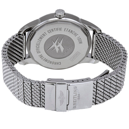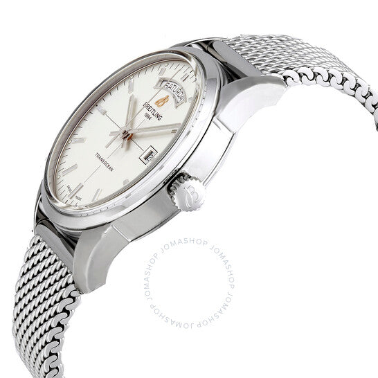 علبة من الفولاذ المقاوم للصدأ مع سوار شبكي من الفولاذ المقاوم للصدأ. إطار ثابت من الفولاذ المقاوم للصدأ. ميناء فضي مع عقارب مضيئة بلون فضي وعلامات ساعات. علامات دقائق حول الحافة الخارجية. نوع الميناء: تناظري. عقارب مضيئة. عرض التاريخ عند موضع الساعة 3. عرض أيام الأسبوع في مركز موضع الساعة 12. حركة بريتلينغ أوتوماتيكية كاليبر 45، مبنية على ETA 2834-2، تحتوي على 25 جوهرة، تنبض بمعدل 28800 ذبذبة في الساعة، ولديها احتياطي طاقة لمدة 42 ساعة تقريبًا. زجاج ياقوت مقاوم للخدش. تاج قابل للسحب/الدفع. غطاء خلفي صلب. شكل دائري. حجم العلبة: 43 مم. سمك العلبة: 12.8 مم. عرض السوار: 22 مم. مشبك قابل للطي. مقاومة للماء حتى عمق 100 متر / 330 قدمًا. الوظائف: التاريخ، اليوم، الساعة، الدقيقة، الثانية. تصميم ساعة كاجوال. ملصق الساعة: صناعة سويسرية. ساعة بريتلينج ترانس أوشن أوتوماتيكية للرجال بمينا فضي A45310121G1A1.