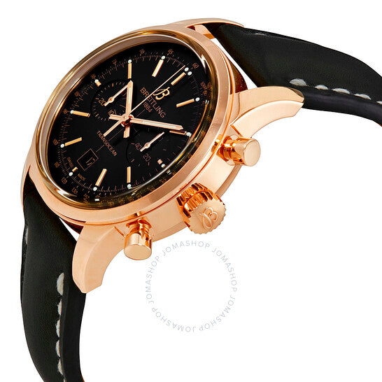 علبة من الذهب الوردي عيار ١٨ قيراطًا مع سوار جلدي أسود. إطار ثابت من الذهب الوردي عيار ١٨ قيراطًا. ميناء أسود بعقارب ومؤشرات ساعات بلون الذهب الوردي. مؤشرات دقائق حول الحافة الخارجية. نوع الميناء: تناظري. عرض التاريخ عند موضع الساعة السادسة. كرونوغراف - ميناءان فرعيان يعرضان: ٦٠ ثانية و٣٠ دقيقة. حركة أوتوماتيكية. زجاج ياقوت مقاوم للخدش. حجم العلبة: ٣٨ مم. شكل العلبة دائري. مشبك تانغ. مقاومة للماء حتى عمق ١٠٠ متر / ٣٣٠ قدمًا. الوظائف: كرونوغراف، تاريخ، ساعة، دقيقة، ثانية. تصميم ساعة فاخرة. علامة الساعة: صناعة سويسرية. ساعة بريتلينغ ترانس أوشن كرونوغراف للرجال بمينا سوداء R4131012-BC07BKLT.