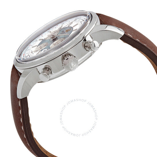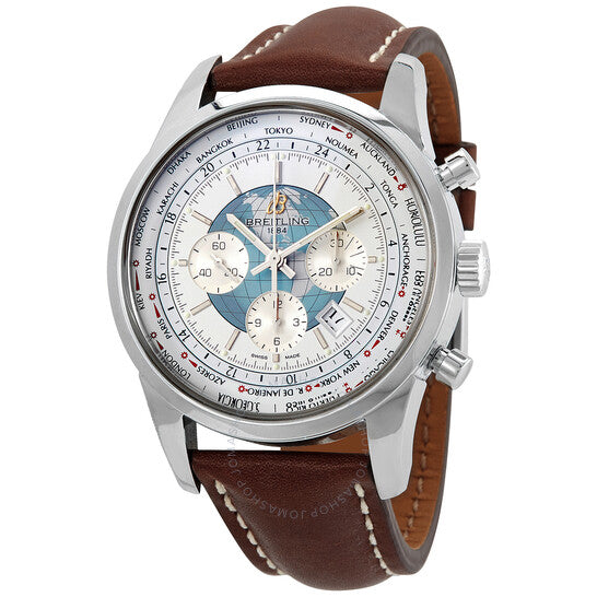 علبة من الفولاذ المقاوم للصدأ مع سوار جلدي بني. إطار ثابت من الفولاذ المقاوم للصدأ. ميناء أبيض بنقش كروي مع عقارب فضية اللون وعلامات ساعات لاصقة. علامات دقائق. مقياس ٢٤ ساعة. مدن التوقيت العالمي حول الحافة الخارجية. نوع الميناء: تناظري. عقارب وعلامات مضيئة. يظهر عرض التاريخ بين موضعي الساعة ٤ و٥. كرونوغراف - ثلاثة أقراص فرعية تعرض: ٦٠ ثانية، ٣٠ دقيقة، و١٢ ساعة. حركة أوتوماتيكية مع احتياطي طاقة يصل إلى ٧٠ ساعة. محرك بريتلينغ ٠٥. كريستال ياقوت مقاوم للخدش. غطاء خلفي صلب. قطر العلبة: ٤٦ مم. شكل العلبة دائري. مشبك تانغ. مقاومة للماء حتى عمق ١٠٠ متر / ٣٣٠ قدمًا. الوظائف: كرونوغراف، تاريخ، ساعة، دقيقة، ثانية، توقيت عالمي. تصميم ساعة فاخرة. ملصق الساعة: صناعة سويسرية. ساعة بريتلينغ ترانس أوشن كرونوغراف يونيتايم أوتوماتيكية للرجال AB0510U0-A732BRLT.