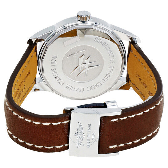 علبة فضية اللون من الفولاذ المقاوم للصدأ مع سوار جلدي بني. إطار ثابت من الفولاذ المقاوم للصدأ فضي اللون. ميناء فضي زئبقي مع عقارب فضية مضيئة وعلامات ساعات. علامات دقائق حول الحافة الخارجية. نوع الميناء: تناظري. عقارب وعلامات مضيئة. عرض التاريخ عند موضع الساعة 3. عرض يوم الأسبوع في مركز موضع الساعة 12. حركة بريتلينغ كاليبر 45 أوتوماتيكية، مبنية على ETA 2834-2، تحتوي على 25 جوهرة، تنبض بمعدل 28800 ذبذبة في الساعة، ولديها احتياطي طاقة لمدة 42 ساعة تقريبًا. زجاج ياقوت مقاوم للخدش. تاج سحب/دفع. برغي في الجزء الخلفي من العلبة. شكل العلبة دائري، حجم العلبة: 43 مم، سمك العلبة: 12.8 مم. عرض السوار: 22-20 مم. مشبك قابل للطي. مقاومة للماء حتى عمق 100 متر / 330 قدمًا. الوظائف: التاريخ، اليوم، الساعة، الدقيقة، الثانية. سلسلة ترانس أوشن داي آند ديت. تصميم ساعة فاخر. علامة الساعة: صناعة سويسرية. إصدارات المنتج: A4531012/G751 740P-A20D.1. ساعة بريتلينغ ترانس أوشن داي-ديت أوتوماتيكية للرجال A4531012-G751BRLD.