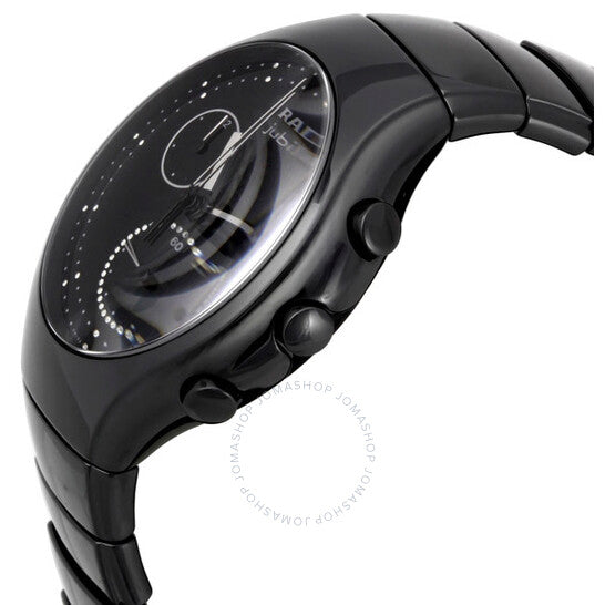 علبة وسوار من السيراميك الأسود. إطار ثابت من السيراميك الأسود. ميناء أسود بعقارب فضية اللون. علامات دقائق حول الحافة الخارجية. نوع الميناء: تناظري. عرض التاريخ عند موضع الساعة الرابعة. كرونوغراف - ثلاثة أقراص فرعية تعرض: 60 ثانية، 12 ساعة، و1/10 من الثانية. حركة كوارتز. كريستال ياقوتي مقاوم للخدش. غطاء خلفي صلب. قطر العلبة: 44 مم. شكل العلبة دائري. مشبك قابل للطي. مقاومة للماء حتى عمق 30 مترًا / 100 قدم. الوظائف: كرونوغراف، عرض التاريخ. تصميم عصري. ساعة رادو كرونوغراف سيراميك سوداء حقيقية للرجال، R27814702.