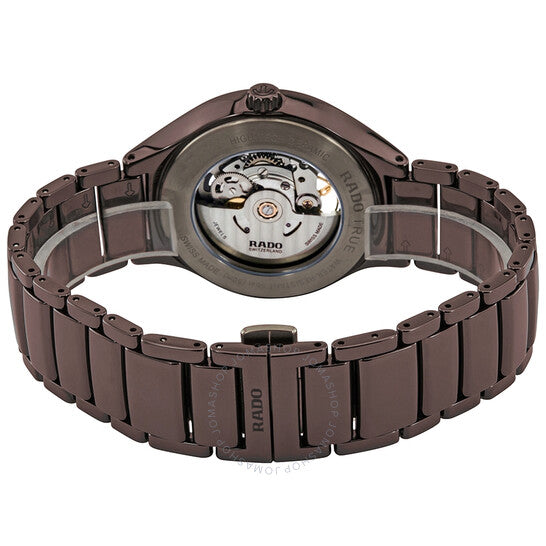 علبة وسوار من السيراميك عالي التقنية باللون البني. إطار ثابت من السيراميك عالي التقنية باللون البني. ميناء هيكلي مع عقارب مضيئة بلون الذهب الوردي وعلامات ساعات. علامات دقائق حول الحافة الخارجية. نوع الميناء: تناظري. عقارب وعلامات مضيئة. حركة أوتوماتيكية. زجاج ياقوت مقاوم للخدش. تاج قابل للسحب/الدفع. غطاء خلفي شفاف. شكل دائري. حجم العلبة: 40 مم. سمكها: 10.4 مم. عرض السوار: 20 مم. مشبك قابل للطي مع مفتاح أمان. مقاومة للماء حتى عمق 50 مترًا / 165 قدمًا. الوظائف: الساعات، الدقائق، الثواني. تصميم كاجوال. علامة الساعة: صناعة سويسرية. ساعة رادو ترو أوبن هارت أوتوماتيكية للرجال R27511302.