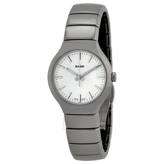 علبة سيراميك بلون البلاتين مع سوار سيراميك بلون البلاتين. إطار ثابت من السيراميك بلون البلاتين. ميناء فضي مع عقارب وعلامات ساعات فضية اللون. علامات دقائق حول الحافة الخارجية. نوع الميناء: تناظري. عقارب وعلامات مضيئة. حركة كوارتز. زجاج ياقوت مقاوم للخدش. تاج قابل للسحب/الدفع. غطاء خلفي صلب. قطر العلبة: 30 مم. شكلها دائري. مشبك قابل للطي. مقاومة للماء حتى عمق 30 مترًا / 100 قدم. الوظائف: الساعات، الدقائق، الثواني. طراز ساعة رسمية. علامة الساعة: صناعة سويسرية. ساعة رادو نسائية من السيراميك بلون البلاتين، بمينا فضي حقيقي، R27656122.