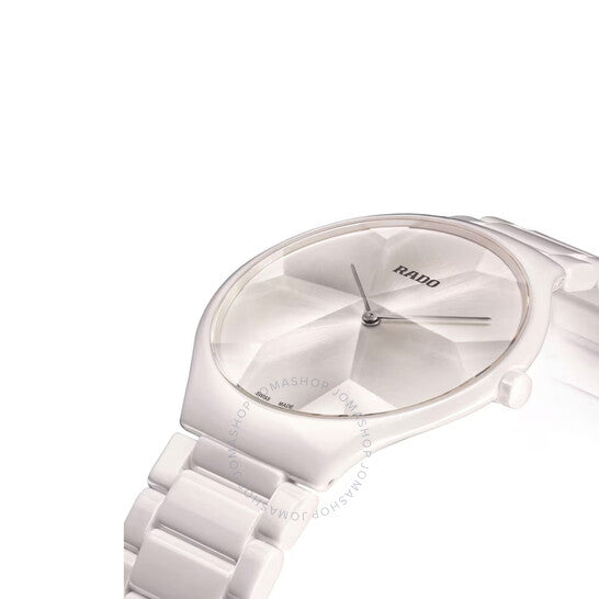 علبة وسوار من التيتانيوم الأبيض. إطار ثابت من السيراميك. ميناء أبيض بعقارب فضية اللون وعلامات ساعات بدون علامات. نوع الميناء: تناظري. حركة كوارتز. زجاج ياقوت مقاوم للخدش. تاج قابل للسحب/الدفع. غطاء خلفي صلب. شكل العلبة دائري، مقاسها: 39 مم. إبزيم قابل للطي بزر ضغط. مقاومة للماء حتى عمق 30 مترًا / 100 قدم. الوظائف: الساعات، الدقائق. سلسلة True Thinline. تصميم كاجوال. علامة الساعة: صناعة سويسرية. رقم الموديل: 01.420.0007.3.003. ساعة رادو True Thinline كوارتز نسائية بمينا بيضاء، R27007032.