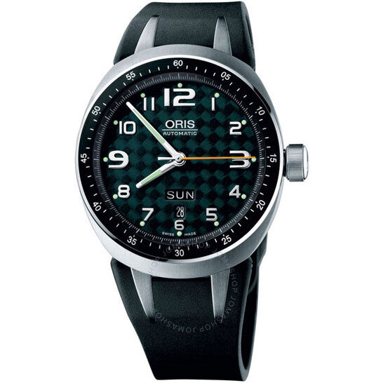 علبة من التيتانيوم مع سوار مطاطي أسود. إطار ثابت من التيتانيوم. ميناء من ألياف الكربون بلون أخضر داكن مع عقارب فضية اللون وعلامات ساعات بأرقام عربية. علامات دقائق حول الإطار الداخلي. مؤشرات وعقارب مضيئة بتقنية سوبرلومينوفا سي 3. عرض اليوم والتاريخ أعلى موضع الساعة السادسة. حركة أوتوماتيكية. زجاج ياقوت مقاوم للخدش. غطاء خلفي هيكلي. قطر العلبة: 41 مم. سُمكها: 13.55 مم. مشبك قابل للطي. مقاومة للماء حتى عمق 100 متر / 330 قدمًا. الوظائف: التاريخ، اليوم، الساعة، الدقيقة، الثانية. ساعة أوريس TT3 داي ديت تيتانيوم أوتوماتيكية للرجال، 635-7588-7067RS