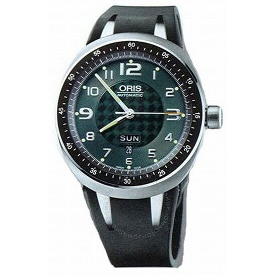 علبة من التيتانيوم مع سوار مطاطي أسود. إطار من التيتانيوم. عروات مرنة. ميناء أخضر مع عقارب فضية اللون وعلامات ساعات بأرقام عربية. علامات دقائق حول الإطار الداخلي. عقارب وعلامات مضيئة. عرض يوم الأسبوع والتاريخ أعلى موضع الساعة السادسة. حركة أوتوماتيكية. زجاج من الياقوت المقاوم للخدش والتوهج. ظهر هيكلي. قطر العلبة: 43.5 مم. مشبك قابل للطي. مقاومة للماء حتى عمق 100 متر / 330 قدمًا. الوظائف: التاريخ، اليوم، الساعة، الدقيقة، الثانية. معلومات إضافية: عرض التاريخ عند موضع الساعة السادسة، عروات مرنة، ظهر هيكلي مع زجاج معدني. ساعة أوريس TT3 داي ديت تيتانيوم أوتوماتيكية للرجال، 635-7589-7067RS.