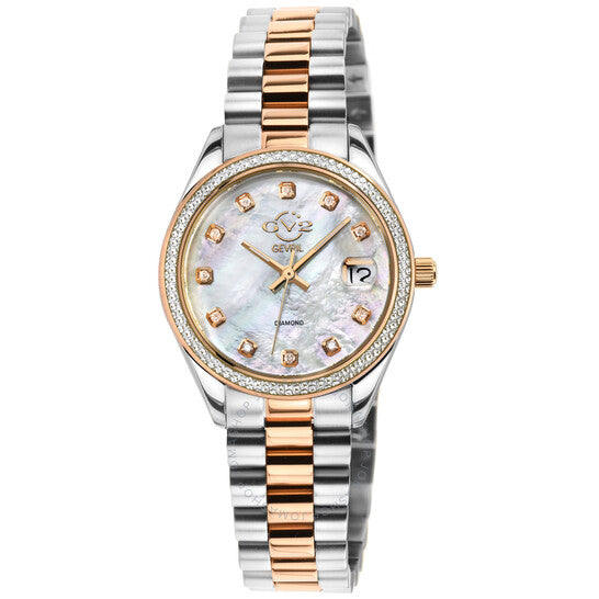 علبة فضية اللون من الفولاذ المقاوم للصدأ مع سوار من الفولاذ المقاوم للصدأ ثنائي اللون (فضي وذهبي وردي). إطار ثابت من الفولاذ المقاوم للصدأ بلون ذهبي وردي. ميناء من عرق اللؤلؤ مع عقارب بلون ذهبي وردي وعلامات ساعات من الماس. نوع الميناء: تناظري. عرض التاريخ عند موضع الساعة 3. حركة كوارتز روندا كاليبر 705. كريستال ياقوت مقاوم للخدش. تاج قابل للسحب/الدفع. غطاء خلفي صلب. شكل دائري، حجم العلبة: 32 مم، سمكها: 9 مم. عرض السوار: 14 مم. مشبك قابل للطي بزر ضغط. مقاومة للماء حتى عمق 50 مترًا / 165 قدمًا. الوظائف: التاريخ، الساعة، الدقيقة، الثانية، مؤشر عمر البطارية. معلومات إضافية: نافذة تاريخ مكبرة. سلسلة تورينو. تصميم عصري. علامة الساعة: سويسرية. ساعة تورين كوارتز ألماس نسائية GV2 من جيفريل 12423B.