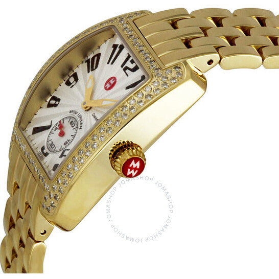 علبة من الفولاذ المقاوم للصدأ بلون ذهبي مع سوار من الفولاذ المقاوم للصدأ بلون ذهبي. إطار ثابت ذهبي اللون مرصع بـ 116 ماسة. ميناء من المينا الأبيض المزخرف بعقارب ذهبية اللون وعلامات ساعات عربية سوداء. علامات دقائق حول الحافة الخارجية. نوع الميناء: تناظري. عقارب وعلامات مضيئة. يظهر قرص فرعي للثواني عند موضع الساعة 6. حركة كوارتز. زجاج من الياقوت المقاوم للخدش. تاج قابل للسحب/الدفع. غطاء خلفي صلب. شكل العلبة: تونيو. حجم العلبة: 29 مم. مشبك قابل للطي بزر ضغط. مقاومة للماء حتى عمق 50 مترًا / 165 قدمًا. الوظائف: ثانية، ساعة، دقيقة صغيرة. معلومات إضافية: الرأس: mw02a01b1001، السوار: ms16ar246710. طراز ساعة فاخرة. علامة الساعة: سويس موف. ساعة ميشيل أوربان ميني نسائية ذهبية اللون مرصعة بالألماس MWW02A000064.