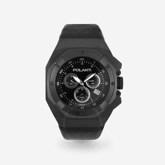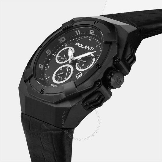 علبة سوداء من الفولاذ المقاوم للصدأ مع سوار أسود من جلد التمساح. إطار ثابت من الفولاذ المقاوم للصدأ أسود. ميناء أسود بعقارب فضية اللون وأرقام عربية وعلامات ساعات. مقياس دقائق حول الحافة الداخلية. نوع الميناء: تناظري. عقارب مضيئة. عرض التاريخ عند موضع الساعة الرابعة. كرونوغراف - ثلاثة موانئ فرعية تعرض: ٦٠ ثانية، ٣٠ دقيقة، و١٢ ساعة. حركة كوارتز روندا كاليبر ٥٠٣٠. زجاج معدني مقاوم للخدش. تاج قابل للسحب/الدفع. غطاء خلفي صلب. هيكل مثمن الشكل، مقاسه: ٤٤ مم، سُمكه: ١٢ مم. عرض السوار: ٢٦ مم، طوله: ٧.٥ بوصة. مشبك بإبزيم. مقاومة للماء حتى عمق ٥٠ مترًا / ١٦٥ قدمًا. الوظائف: كرونوغراف، تاريخ، ساعة، دقيقة، ثانية. سلسلة فاليانت. طراز ساعة رسمية. علامة الساعة: حركة سويسرية. ساعة بولانتي فاليانت كرونوغراف كوارتز بمينا أسود للرجال PLV-2900BK.