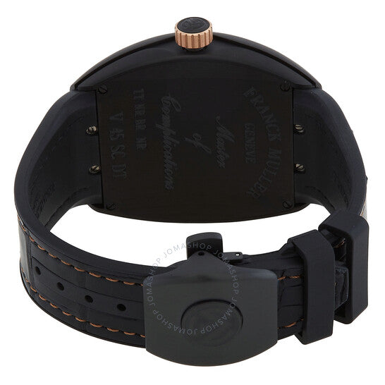 علبة تيتانيوم سوداء مع سوار جلدي/مطاطي أسود. إطار ثابت من التيتانيوم الأسود. ميناء أسود بعقارب سوداء وعلامات ساعات رقمية عربية. علامات دقائق حول الحافة الخارجية. نوع الميناء: تناظري. عقارب وعلامات مضيئة. عرض التاريخ عند موضع الساعة السادسة. حركة أوتوماتيكية. زجاج ياقوت مقاوم للخدش. تاج لولبي. غطاء خلفي صلب. شكل العلبة: تونيو، حجم العلبة: 45 مم، سمكها: 12.7 مم. عرض السوار: 27 مم، طوله: 8 بوصات. مشبك قابل للطي بزر ضغط. مقاومة للماء حتى عمق 30 مترًا / 100 قدم. الوظائف: التاريخ، الساعة، الدقيقة، الثانية. معلومات إضافية: الساعة، الدقيقة، الثانية، التاريخ. سلسلة فانغارد. تصميم ساعة فاخرة. علامة الساعة: صناعة سويسرية. ساعة فرانك مولر فانغارد أوتوماتيكية للرجال بمينا أسود 45SCBLKBLKGLD-1.