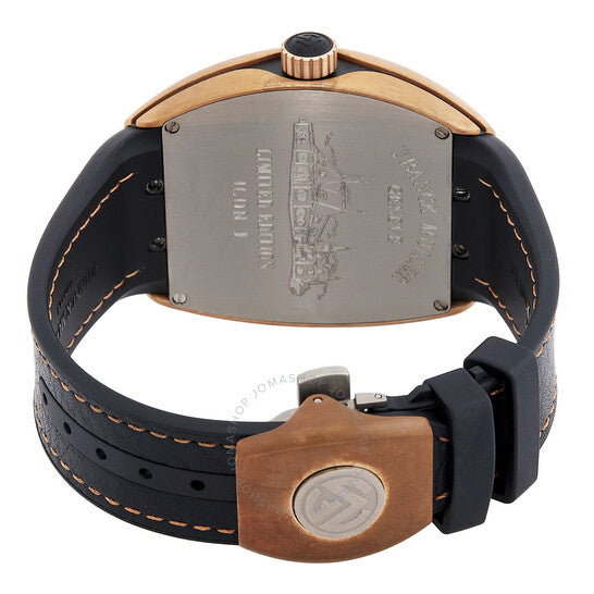 علبة برونزية بحزام جلدي. إطار برونزي ثابت. علامات ساعات بأرقام عربية. علامات بوصلة حول الحافة الخارجية. نوع الميناء: تناظري. عقارب وعلامات مضيئة. عرض التاريخ عند موضع الساعة السادسة. حركة أوتوماتيكية. زجاج ياقوت مقاوم للخدش. تاج لولبي. غطاء خلفي صلب. شكل العلبة: تونيو، أبعادها: 44 × 53.7 مم، سُمكها: 13.42 مم. مشبك تانغ. مقاومة للماء حتى عمق 30 مترًا / 100 قدم. الوظائف: التاريخ، الساعة، الدقيقة، الثانية. معلومات إضافية: العلبة الأصلية، دليل الاستخدام (ملحقات كاملة). سلسلة فانجارد. طراز ساعة فاخرة. ملصق الساعة: صناعة سويسرية. إصدارات متنوعة: V 45 SC DT BZ BR ICON 1 NR. ساعة فرانك مولر فانجارد الأوتوماتيكية للرجال V 45 SC DT BZ BR ICON 1 NR.