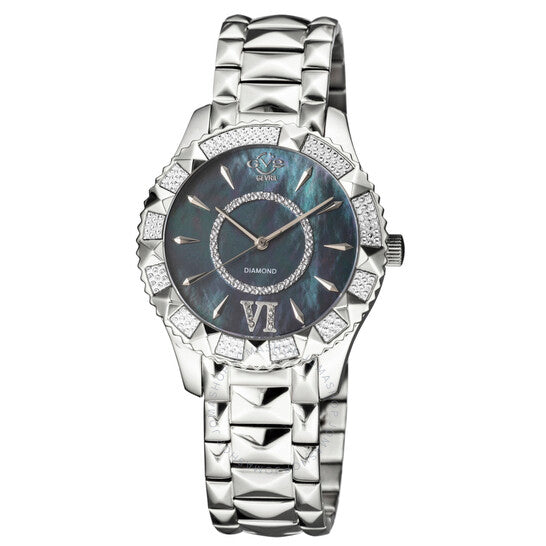 علبة من الفولاذ المقاوم للصدأ فضية اللون مع سوار فضي اللون. إطار ثابت من الفولاذ المقاوم للصدأ فضي اللون. ميناء أسود بعقارب فضية اللون وأرقام رومانية وعلامات ساعات. نوع الميناء: تناظري. حركة كوارتز سويسرية روندا 763. زجاج ياقوت مقاوم للخدش. تاج قابل للسحب/الدفع. غطاء خلفي صلب. شكل دائري، مقاس العلبة: 39 مم، سمكها: 10 مم. عرض السوار: 18 مم. مشبك قابل للطي بزر ضغط. مقاومة للماء حتى عمق 50 مترًا / 165 قدمًا. الوظائف: الساعات، الدقائق، الثواني. تصميم عصري. ساعة GV2 من جيفريل فينيس كوارتز نسائية بمينا سوداء، 11710-424.