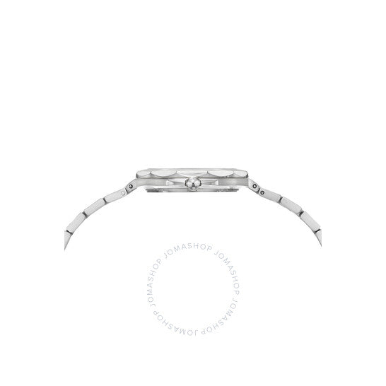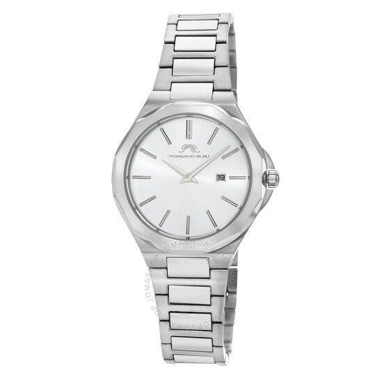 ساعة بورسامو بلو فيكتوريا للسيدات بهيكل وسوار من الفولاذ المقاوم للصدأ؛ ميناء فضي مزين بأشعة الشمس؛ نافذة لعرض التاريخ عند الساعة الثالثة؛ لون فضي