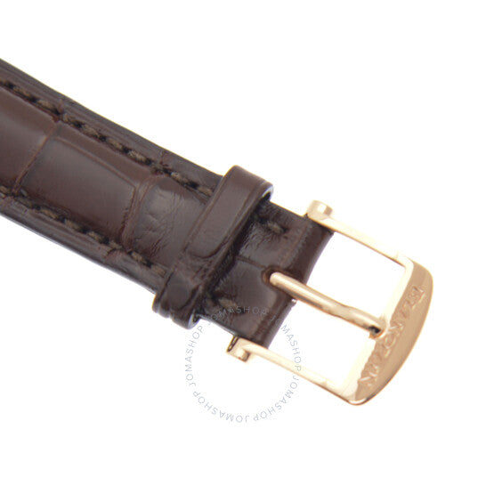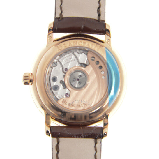 علبة من الذهب الوردي عيار ١٨ قيراطًا مع سوار من الجلد البني. إطار ثابت من الذهب الوردي عيار ١٨ قيراطًا مرصع بالألماس. ميناء أبيض بعقارب ذهبية اللون على شكل أوراق شجر وعلامات ساعات من الألماس. أرقام رومانية تُشير إلى مواضع الساعات ٣ و٦ و٩ و١٢. نوع الميناء: تناظري. حركة أوتوماتيكية من بلانكبان عيار ٩١٣، تحتوي على ٢٠ جوهرة، وتتكون من ١٧٤ جزءًا، وتنبض بمعدل ٢١٦٠٠ ذبذبة في الساعة، وتتمتع باحتياطي طاقة يصل إلى ٤٠ ساعة تقريبًا. زجاج من الياقوت المقاوم للخدش. تاج لولبي. غطاء خلفي شفاف. شكل دائري. حجم العلبة: ٢٩ مم. سمكها: ٩ مم. عرض السوار: ١٥ مم. مشبك تانغ. مقاومة للماء حتى عمق ٣٠ مترًا / ١٠٠ قدم. الوظائف: الساعة، الدقيقة، الثانية. تصميم ساعة فاخرة. علامة الساعة: صناعة سويسرية. ساعة بلانكبان فيليريت أوتوماتيكية نسائية بمينا بيضاء مرصعة بالألماس ٦١٠٤-٢٩٨٧-٥٥A.