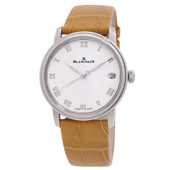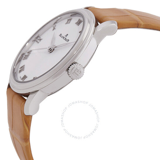 علبة من الفولاذ المقاوم للصدأ فضية اللون مع سوار من جلد التمساح. إطار ثابت من الفولاذ المقاوم للصدأ فضي اللون. ميناء أبيض بعقارب فضية اللون وعلامات ساعات رومانية. نوع الميناء: تناظري. عرض التاريخ عند موضع الساعة 3. حركة أوتوماتيكية من بلانبان كاليبر 1151، تحتوي على 28 جوهرة، مكونة من 210 أجزاء، تنبض بمعدل 21600 ذبذبة في الساعة، ولديها احتياطي طاقة يصل إلى 100 ساعة تقريبًا. زجاج ياقوتي مقاوم للخدش. غطاء خلفي شفاف. شكل العلبة دائري، مقاسها: 33.2 مم، سمكها: 8.9 مم. عرض السوار: 18 مم. مشبك بإبزيم. مقاومة للماء حتى عمق 30 مترًا / 100 قدم. الوظائف: التاريخ، الساعة، الدقيقة، الثانية. سلسلة فيليه. تصميم ساعة فاخرة. علامة الساعة: صناعة سويسرية. رقم الصنف: N06127O011027N095A. ساعة بلانكبان فيليريت أوتوماتيكية للسيدات بمينا أبيض 6127-1127-95A.
